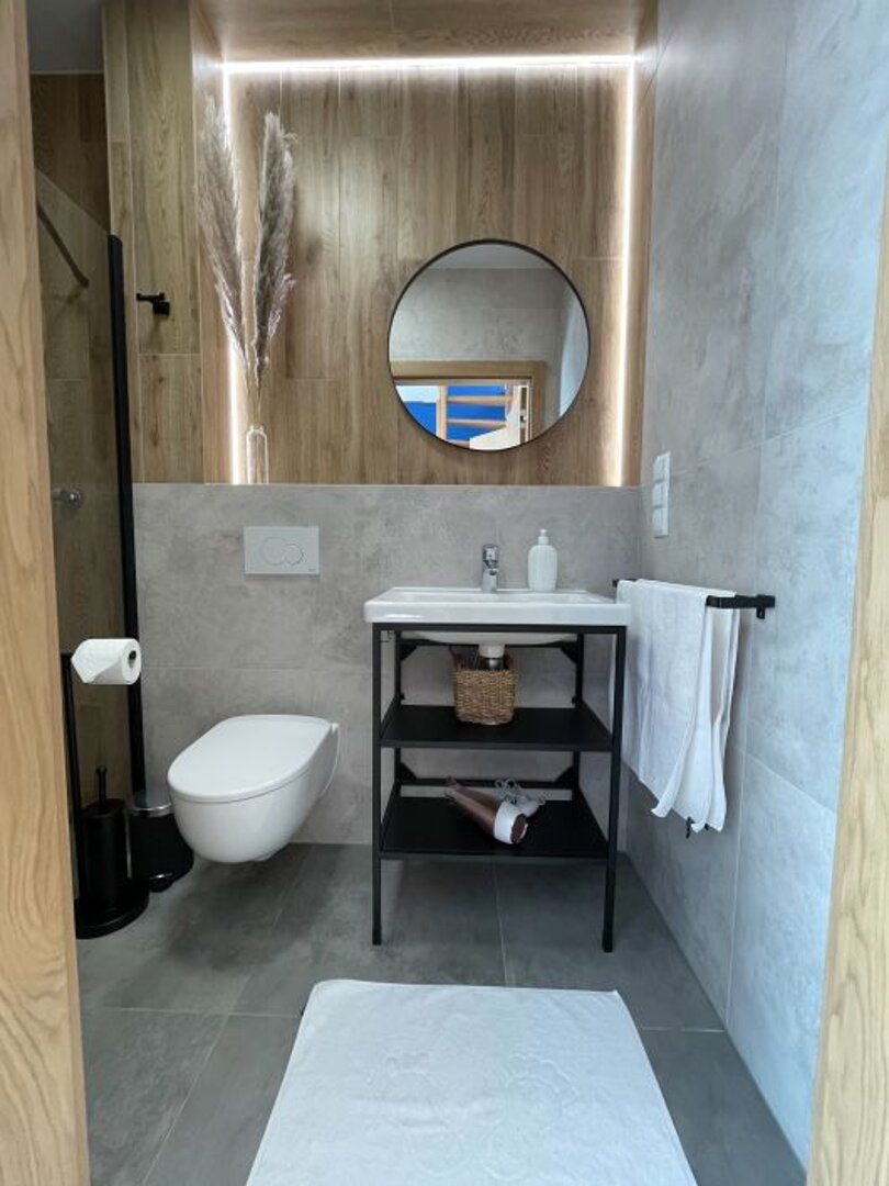 Odpocznij w naszych dużych, jasnych apartamentach, łączących komfort domowego wnętrza z nadmorskim klimatem. Każdy pokój oferuje wygodne łóżka, miejsce do pracy z dostępem do Wi‑Fi, prywatny , duży taras na poranną kawę oraz przestronną łazienkę z ręcznikami i suszarką do włosów. Do Twojej dyspozycji jest także minilodówka na napoje i przekąski.